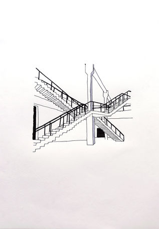 Nesta série, baseada em fotografias que fiz ao longo dos anos, as escadas representam,